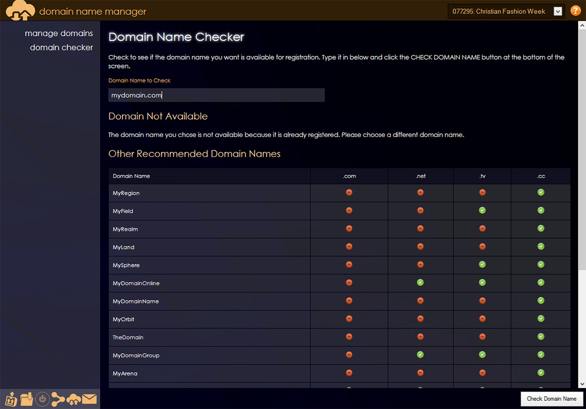 Domain Checker: Search for domain names and receive suggestions if the domain name you are searching for is taken.